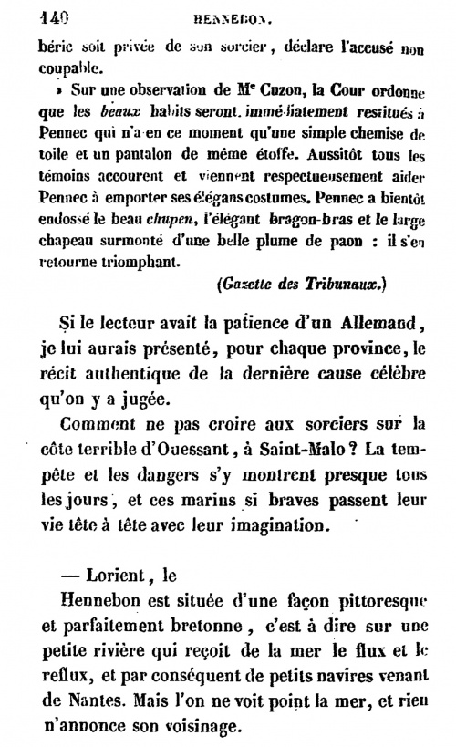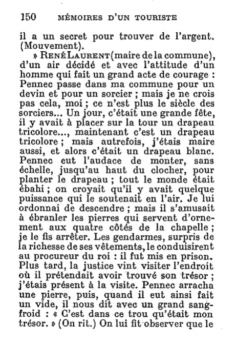 Stendhal reprend à son compte le compte-rendu de la Gazette des Tribunaux pour ce procès qui eut lieu à Quimper en 1838. Sa retranscription est presque complète, hormis le titre "UN SORCIER - MOEURS BRETONNES - CE QUE VAUT UNE FILLE", et quelques paragraphes tronqués ou omis.
