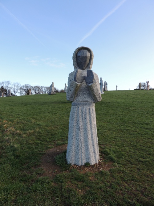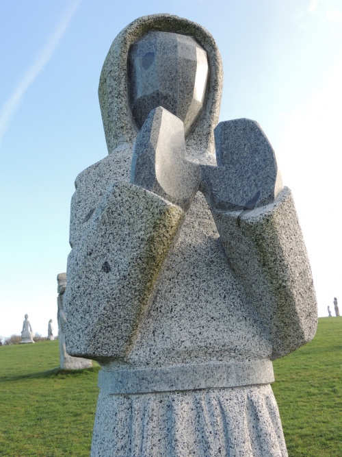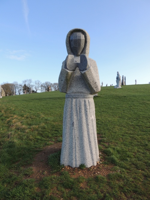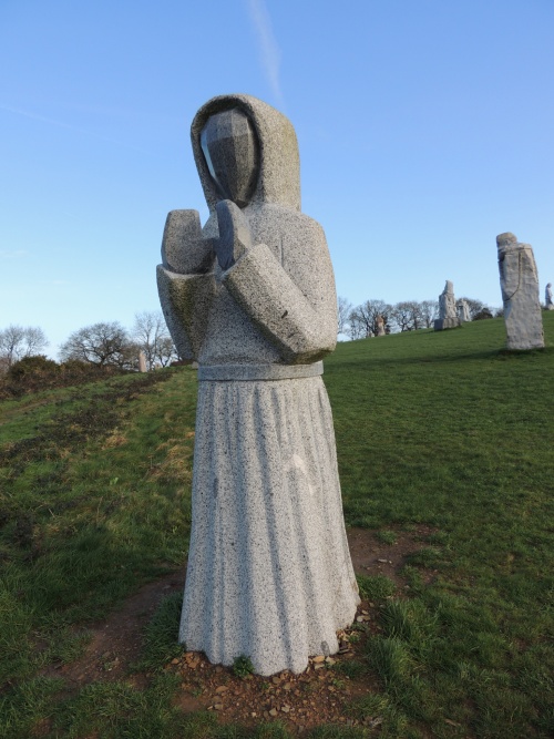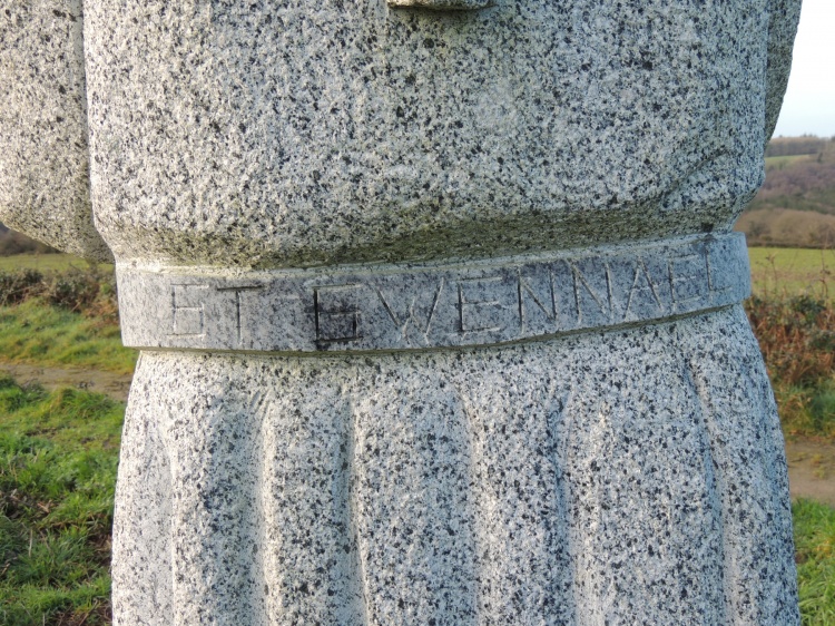 Grâce à une souscription populaire de 15.000 euros collectés auprès de 136 donateurs, une grande statue de saint Guinal/Guénaël a été dressée en 2019 sur le site de la Vallée des Saints de Carnoêt (Côtes d’Armor). La statue a été réalisée fin 2018 par Cyril Pouliquen, l'éminent sculpteur de Plourin-lès-Morlaix. Sur le site de Carnoët il a déjà produit les saintes et saints Dalerc'ha, Donasian et Rogasian, Ernog, Pergat et Visant Férrier. La statue de Saint Gwennael est taillée dans un bloc de granit de jolis grains foncés, avec les plus d'une robe de bure jusqu'au sol et en contraste une figure et des mains vitrifiées. |