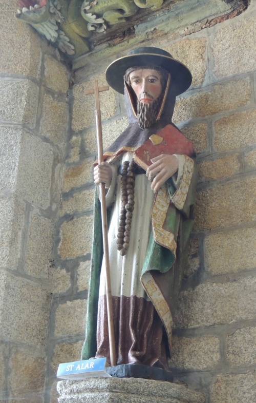 On sait très peu de choses de la vie de ce saint évêque dont le culte est très répandu dans le diocèse de Quimper et très populaire comme protecteur des chevaux. Saint Alar était à l'origine le saint protecteur des alevins et des alevineurs Sous les noms d'Alar, Alor ou Alour, il est le patron des églises paroissiales de Mespaul, Garlan, Roscanvel et Saint-Éloy, Tréguennec Tréméoc, Plobannalec-Lesconil et Ergué-Armel dans le Finistère et de nombreuses chapelles lui sont dédiées. Une fontaine lui est consacrée à Ergué-Armel où un pèlerinage y est organisé et où on peut jeter des pièces pour favoriser son mariage ou l'arrivée de la pluie. |