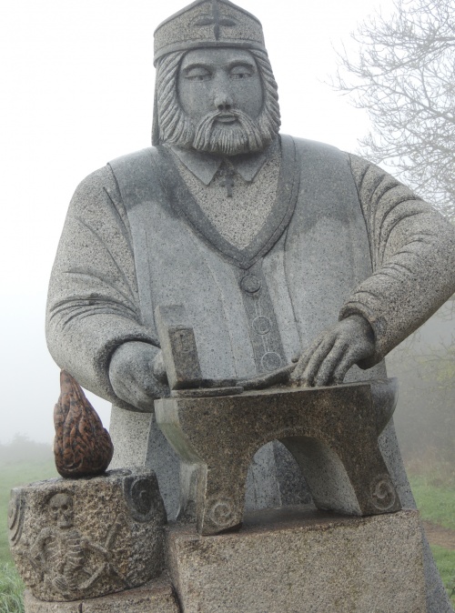 Son nom a été donné également au ruisseau, vallon et jardin botanique du Stang-Alar à Brest, ainsi qu'à la vallée de l'Odet à quelques kilomètres au nord de Quimper, les gorges du Stangala. Sur ce dernier site une légende principale lui est attachée, à savoir le saut qu'il a effectué d'un versant à l'autre alors qu'il était poursuivi par des brigands. Des statues polychromes le représentent dans les églises de Pleyben, Brasparts, Locronan, Plozévet et à la chapelle St-Guénolé d'Ergué-Gabéric Courant septembre 2017, une statue monumentale de plus de 3m50, en granit de Cleder, a été réalisée par les sculpteurs Patrice Le Guen et Jean-Philippe Drévillon sur le site de la Vallée des saints de Carnoët. Le saint est représenté martelant un fer à cheval sur un établi de forge, la vasque contenant le feu est gravée d'une représentation de la mort ou d'un diable. |