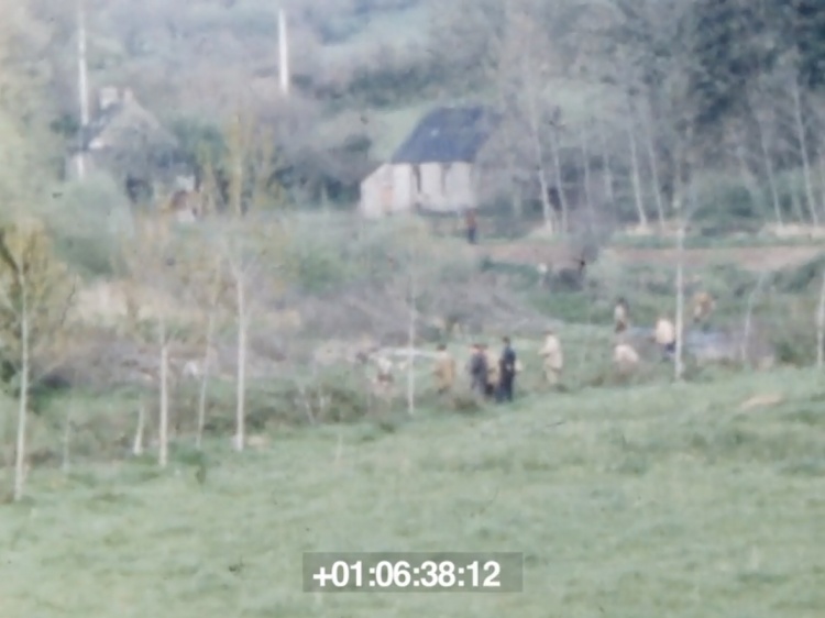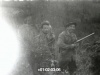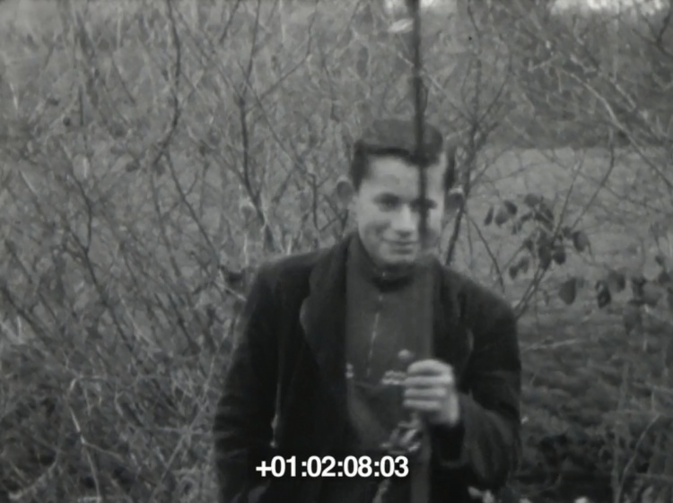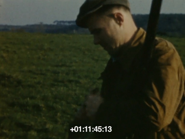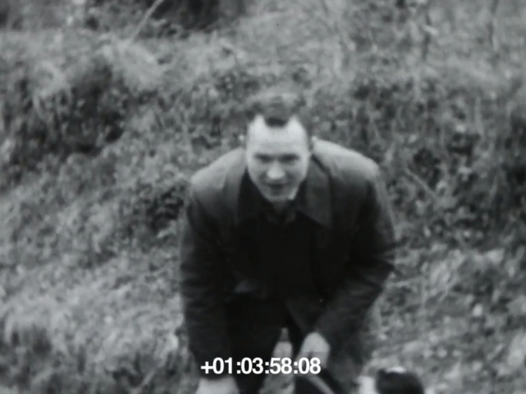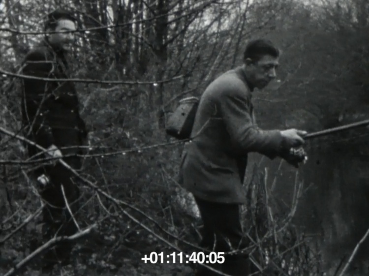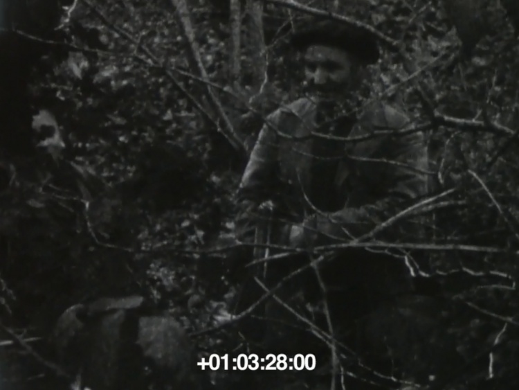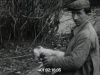 Sur le catalogue de la cinémathèque la description du premier film, « Tableau de Chasse » (entièrement en N&B), est la suivante : « Des enfants tiennent du gibier qui a été chassé. Battue à l'entente de Saint André : un chasseur boit du vin à la bouteille avant la battue, il nourrit son chien. Un chasseur sort une hermine ou un furet de son sac pour débusquer le gibier. Différentes scènes de chasse. Partie de chasse avec un chien. À la recherche de la bécasse : des hommes et des enfants présentent leurs trophées de chasse. Partie de pêche en rivière (l'Odet) près d'un barrage, des enfants pêchent, un homme prépare sa ligne de pêche avec de l'appât. Goémoniers et goémonières récoltent les algues en bord de mer. L'embouchure de l'Odet, voilier. Vire cailloux et pêche à l'épuisette en famille. Pêche en rivière. ». De tous temps, les sociétés de chasse ont été très nombreuses à Ergué-Gabéric : en 1984 on en recense encore 29, chacune regroupant les chasseurs autour d'une ou deux fermes voisines. Ici, en 1959, c'est l'Entente de St-André qui organise ses battues et sorties de chasse. Alain Quelven se filme lui-même en présentant deux bécasses, mais c'est surtout les chasseurs qu'il accompagne avec sa caméra dans les champs et bois à la recherche de lapins, perdrix ou bécasses. On y voit notamment Jos Le Garrec de Guilly-Vian, Guillaume Hémery de Guilly Vraz, Pierre et Pierrick Le Bihan de Kervoréden, Alain et Louis Le Roy de Kersaux, Louis Quelven de Garsalec, Hervé Bellinger de Keranguéau, Louis Quillec de Bigoudic, Guillaume Kerouredan de Ty-Coat ... Les chasseurs, de tous âges, réunissent les deux générations 30-40 et 50-60 ans. Et ils sont tous bien équipés, d'un fusil bien sûr et d'une grande poche carnier à l'arrière de la veste où ils mettent les petits gibiers (lapins, bécasses...) qu'ils ont tirés. |