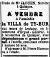 Ti-Bur est un nom récent qui a supplanté Kerjenny. C'est un petit manoir près de la route de Coray dans le quartier de Lenn hesk. À noter que l'orthographe ty toujours très usitée est un archaïsme. Le breton actuel écrit ti tout simplement, ou ti-nevez maison neuve. | |||||||||||||||