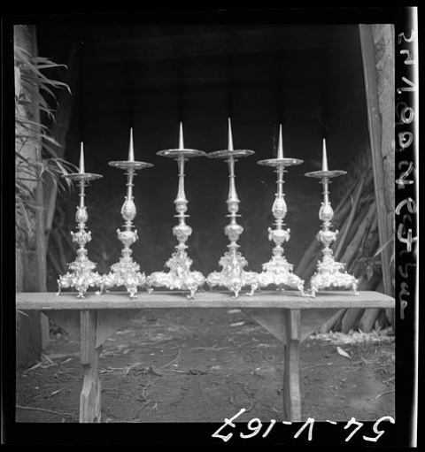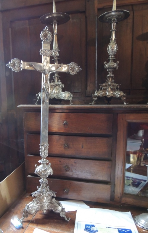 Où il est question de belles pièces d'orfèvrerie religieuse des 17e et 18e siècles, conservées et exposées dans l'église paroissiale d'Ergué-Gabéric. Pendant longtemps placées dans la sacristie, elles sont depuis ce printemps 2019 protégées par une vitrine sécurisée et visible dans l'église St-Guinal. Classés au titre de la loi sur les Monuments historiques en 1994, ces éléments gabéricois ont été confectionnés des maîtres-orfèvres quimpérois, identifiés par leurs poinçons, et peut-être parisiens.