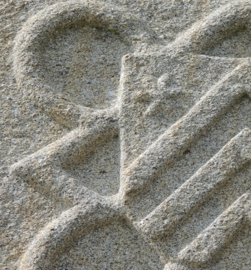 Un très bel écu noble entouré d'un support ornemental, le tout gravé en bosse sur un linteau d'une porte de la façade sud du presbytère d'Ergué-Gabéric, et qui est bien en valeur depuis le lessivage des murs en 2008. Aucun mémorialiste n'a signalé la présence de ce bel ouvrage, ni transmis des informations sur son origine. On a pensé un moment qu'il s'agissait des chevrons des Kervastard-Kerengar d'Elliant, mais il est désormais attesté que le blason du presbytère fut la marque noble d'un recteur-chanoine du 16e siècle. Autres lectures : « Jean Parcevaux, chanoine et recteur (1568) » ¤ « Le blason aux trois chevrons des Kervastard-Kerengar d'Elliant » ¤ « 1957-1961 - La restauration du presbytère par Roger Le Flanchec » ¤ « Le blason Lopriac sur la sacristie de Kerdévot » ¤ « Le blason écartelé de la fontaine de Kerdévot » ¤ « Les blasons de la maîtresse-vitre de la chapelle de Kerdévot » ¤ |