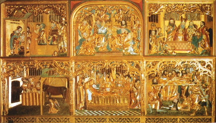 Une invitation à la créativité et l'imagination pour évoquer le trésor historique qui, fraichement restauré, a retrouvé en ce printemps 2013 sa chapelle de dévotion. Autres lectures : « Retable flamand de Kerdévot » ¤ « La nativité du retable de Kerdévot » ¤ « FATY Bruno - Le retable de Notre-Dame de Kerdévot » ¤ « ABGRALL Jean-Marie - Le Retable de Kerdévot » ¤ « DURAND Gildas - La statuaire à Kerdévot » ¤ « MUSÉE BRETON (Quimper) - Relations Bretagne-Flandres aux 14-16 siècles » ¤ « Espace Chapelle de Kerdévot » ¤ « Les marques de fabrique des ateliers flamands du 15e siècle sur le retable de Kerdévot » ¤ |