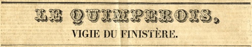 - Le journal « Le Quimpérois » est fondé en avril 1838 par Théophile Guérin, directeur de la Banque immobilière, et par l'économiste et historien Armand Du Chatellier. C'est le premier journal d'annonces paraissant chaque samedi, chaque numéro incluant des « morceaux de littérature », les mouvements du port de Quimper et les nouvelles modes qui voient le jour à Paris ... [Ref.↑]