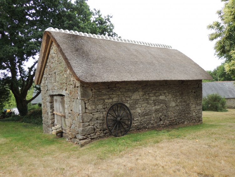 Crêche au toit de chaume et linteau de pierre du 16e au village de Kerveady