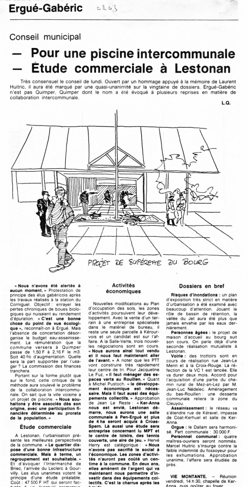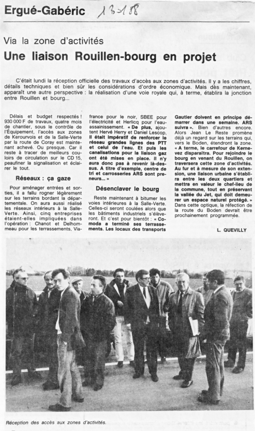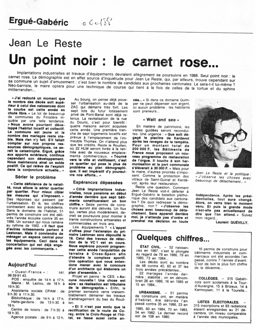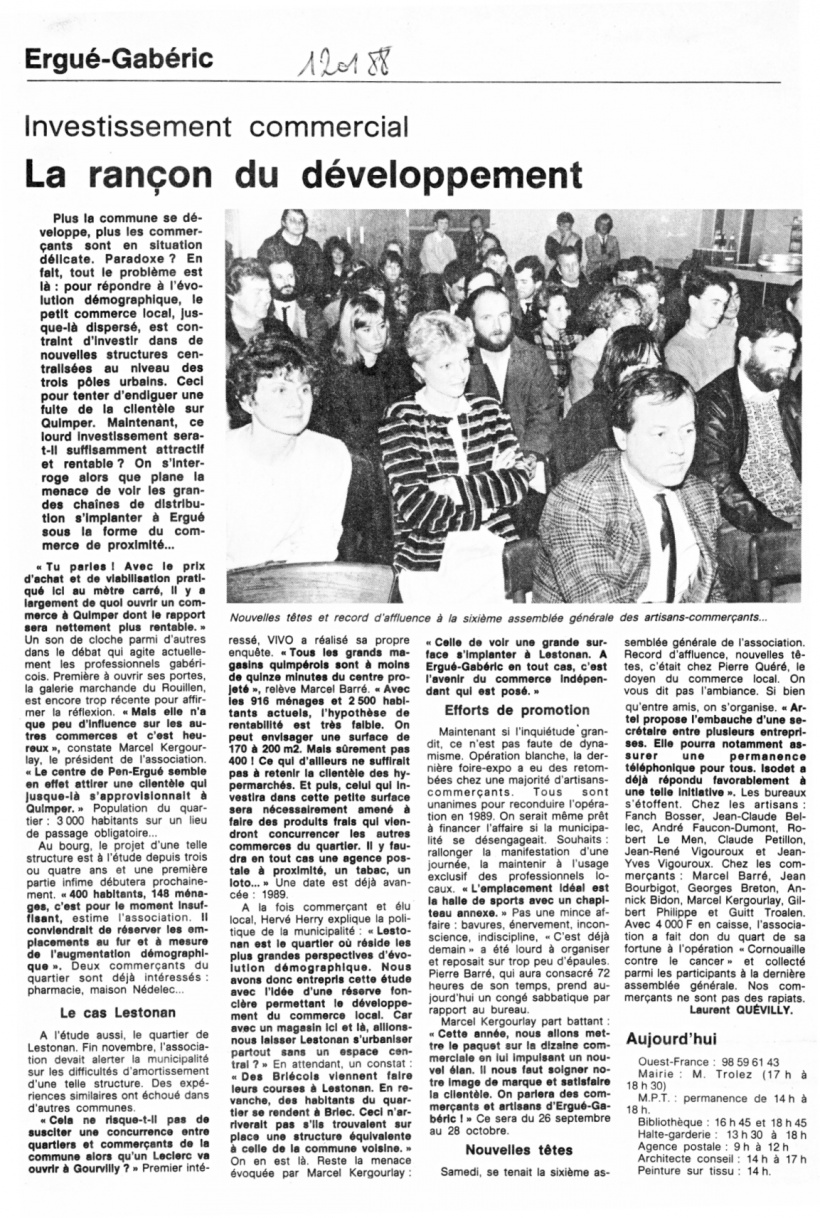 | Les 6, 12, 13 et 20 janvier, les 2 et 21 mars, le 2 septembre 1988 paraissaient dans les colonnes du Ouest-France des articles de Laurent Quevilly sur les affaires municipales.
